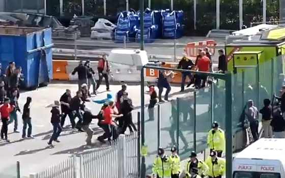 وقد انخرط بعض المشجعين في مشاجرات قوية بالأيدي قبل أن تتدخل فرقة من قوات الأمن البريطانية للفصل بينهما.