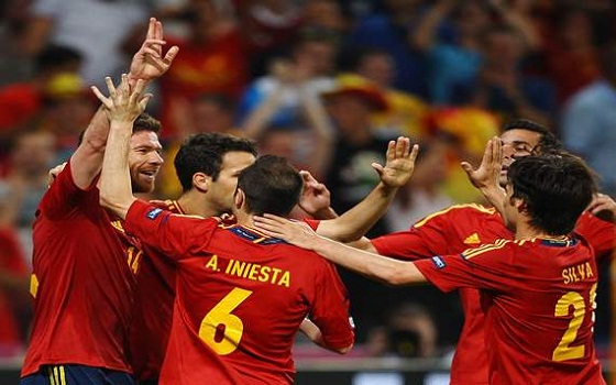 أحدث فيثنتي ديل بوسكي تغييرا في طريقة لعبه في المباريات الرسمية حيث قرر تطبيق طريقة 4-3-3 التي تتحول في حالة الدفاع إلى 4-3-2-1 للضغط على المنافس، واعتمد في هذه المرة على مهاجم صريح هو سولدادو الذي شارك أساسيا على حساب كل من توريس وفيا، ودفع بالثنائي بيدرو وانييستا في مركزي الجناح الأيمن والأيسر على التوالي، بينما تمركز كل من تشافي وفابريغاس وبوسكتس في منتصف الملعب، أمام رباعي الدفاع اربيلوا وبيكي وراموس والبا، واستعاد القائد المخضرم ايكر كاسياس مركزه في حراسة المرمى رغم ابتعاده عن المشاركة بصورة أساسية مع فريقه ريال مدريد منذ كانون الثاني/ يناير الماضي.