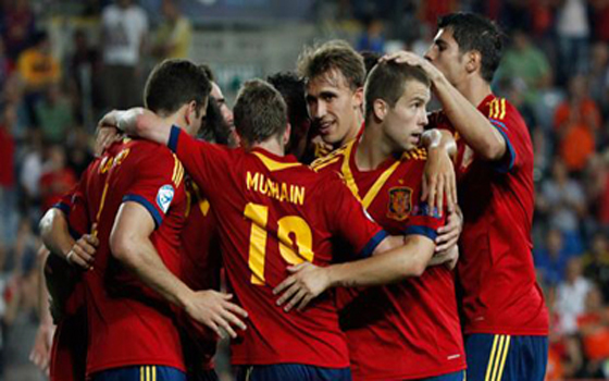 توج منتخب إسبانيا الثلاثاء ببطولة كأس الأمم الأوروبية للشباب (تحت 21 عاما) والتي تستضيفها القدس المحتلة وذلك بالفوز على إيطاليا بنتيجة 4-2 في المباراة النهائية.أحرز أهداف المباراة لصالح منتخب إسبانيا كل من تياجو ألكانترا بواقع ثلاثة أهداف "هاتريك" فيما أضاف الهدف الرابع إيسكو، بينما سجل لإيطاليا كل من شيرو إيموبيلي وفابيو بوريني.وتعد هذه رابع مرة تفوز إسبانيا خلالها بكأس الأمم الأوروبية للشباب