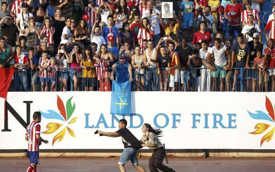 انتهت مراسم تقديم النجم الإسباني ديفيد فيا كصفقة جديدة لنادي أتلتيكو مدريد بطريقة درامية حين اقتحم العشرات من المشجعين أرضية ملعب فيسنتي كالديرون في محاولة لمصافحة اللاعب، وسط حالة من الفوضى العارمة وغياب سيطرة من قبل رجال الأمن.