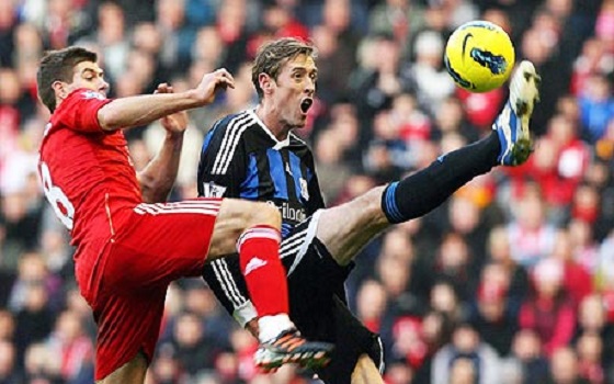 مينيوليه لركلة جزاء سددها جوناثان والترز قبل دقيقة واحدة على نهاية اللقاء.واستطاع صانع اللعب البرازيلي فيليب كوتينيو أن يضبط إيقاع لعب ليفربول، بينما تصدى اسمير بيجوفيتش حارس ستوك لعدة تسديدات على مرماه قبل أن يسجل ستوريدج هدفه.وسدد لاعب الوسط جوردان هندرسون في القائم في الشوط الثاني في ظل سعي ليفربول الحثيث بحثا عن هدف آخر، إلا أن بوجوفيتش واصل التصدي لهجمات الفريق المضيف الساعي لنيل أول ألقابه في الدوري الإنكليزي منذ العام 1990 .
