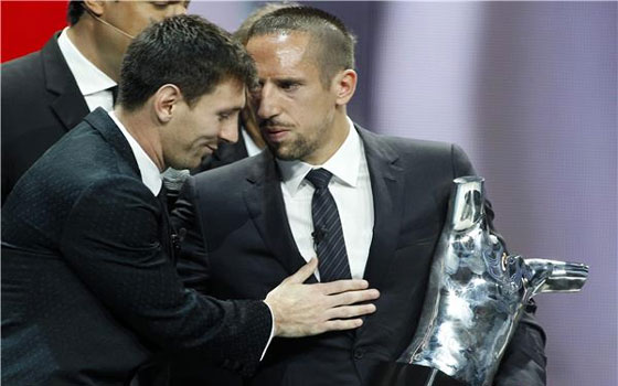وبينما غاب رونالدو عن حفل اليويفا الخميس، تجنبًا لفقدانه الجائزة مثلما حدث في 2011 و2012 ، حرص ميسي على تقديم التهنئة لريبيري الذي استحق الجائزة عن جدارة.