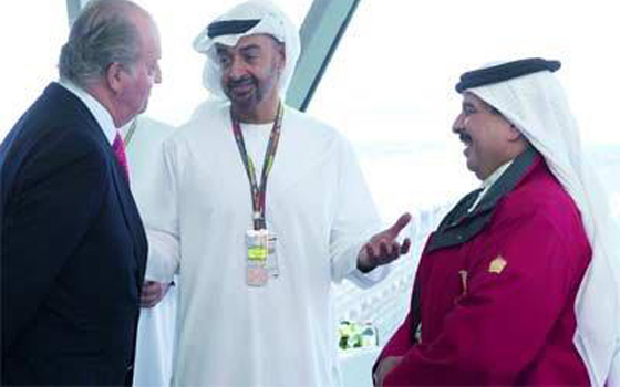العاملين في حلبة البحرين الدولية على ما قدموه من جهود مخلصة وكبيرة، أسهمت في نجاح هذا الحدث الرياضي العالمي الذي يواصل كل عام تحقيق نجاح أكبر وأشمل. وأشاد ملك البحرين بـ "الدور الفعال الذي بذله الجميع في نجاح هذا السباق الذي يعكس الصورة النموذجية المشرفة لمملكة البحرين، وعطاء أبنائها المخلصين في تنظيم هذا السباق العالمي الذي يستقطب الكثير من الزوار والسياح، ومحبي رياضة سباق السيارات من جميع أنحاء العالم".وأثنى جلالته على "هذه المشاركة الواسعة من الجميع، وحرصهم الدائم على توفير الإمكانات كلها والتسهيلات للزوار والسياح".وأعرب جلالته عن "تقديره للاتحاد الدولي للسيارات والفرق المشاركة والجهات الراعية وحلبة البحرين الدولية على دورهم في تنظيم هذا السباق وثقتهم في نجاحه ."وهنأ ملك البحرين "الفرق الفائزة فيما تمنى لبقية الفرق الأخرى حظًا أوفر في السباقات المقبلة، وشكر الجميع على ثقتهم في مملكة البحرين بمجيئهم إلى هذا السباق"، وأعرب عن "تطلعه بالترحيب بهم مرة أخرى في العام المقبل".وكان الملك حمد بن عيسى آل خليفة حرص على حضور منافسات جائزة البحرين الكبرى لطيران الخليج لسباق السيارات "الفورمولا 1".ولدى وصول موكب جلالة الملك يصاحبه الفريق أول الشيخ محمد بن زايد آل نهيان، ولي عهد أبوظبي نائب القائد الأعلى للقوات المسلحة في دولة الإمارات العربية المتحدة الشقيقة، كان في الاستقبال صاحب السمو الملكي، الأمير سلمان بن حمد آل خليفة، ولي العهد نائب القائد الأعلى، النائب الأول لرئيس مجلس الوزراء ورئيس وأعضاء مجلس إدارة حلبة البحرين الدولية .وقد توجه جلالته إلى القاعة الرئيسية للحلبة، إذ تابع من هناك سباق "الفورمولا1".وتبادل جلالة الملك خلال السباق الأحاديث مع ضيوف البحرين وهم صاحب السمو الملكي الأمير الوليد بن طلال بن عبدالعزيز آل سعود، وسمو الشيخ ماجد بن محمد بن راشد آل مكتوم رئيس هيئة دبي للثقافة والفنون والسيد بيرني إيكلستون مالك حقوق سباقات "الفورمولا 1" وعدد من الممثلين من جمهورية تركيا، إذ رحب جلالته بهم وشكرهم على حضورهم هذا المحفل الرياضي العالمي.