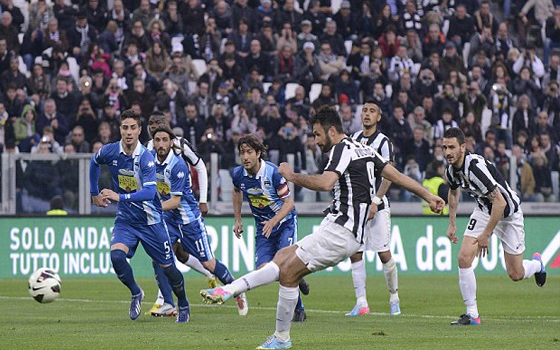 تمكن نادي اليوفنتوس الإيطالي من الحفاظ على صدارة الدوري الإيطالي الممتاز بعد الفوز على بيسكارا 2-1 في تورين، وهو الفوز الذي طال انتظاره ليتسع الفارق بين اليوفي ونابولي صاحب المركز الثاني إلى 12 نقطة وذلك بعد إحراز اللاعب ميركو فوسينيتش لهدف الفوز في الدقيقة 72 من زمن المباراة من ركلة جزاء بعد أن حصل اللاعب جيوسبيه ريزو على البطاقة الحمراء وطُرِد من الملعب.