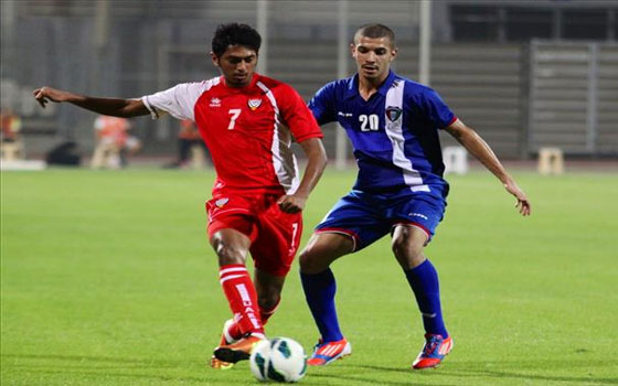 ، وينجح المنتخب الأوليمبي البحريني في التأهل المبكر للدور قبل النهائي وهو الذي يتصدر ترتيب المجموعة برصيد ( 3 ) نقاط ويلتقي منتخبا البحرين مع الكويت الإثنين المقبل، في ختام لقاءات المجموعة، إذ يحتاج الأزرق للفوز أو التعادل لضمان التأهل، فيما تنحصر آمال المنتخب الإماراتي في خسارة المنتخب الكويتي بأكثر من هدف أمام أصحاب الأرض وشهدت بداية اللقاء بين الكويت والإمارات حالة من المد والجزر بين لاعبي المنتخبين، إذ انحصرت الكرة في منتصف الملعب مع تسجيل أفضلية نسبية من الجانب الكويتي الذي وصل خلال الدقائق الخمسة الأولى من زمن الشوط الأول إلى مرمى المنتخب الإماراتي في أكثر من مناسبة، كان أبرزها تسديدة اللاعب عبدالرحمن بالي التي اعتلت العارضة من ضربة ثابتة، في أول تهديد على مرمى الحارس الكويتي عبدالعزيز مرزوق.وسرعان ما استعاد الأبيض الإماراتي الثقة، وكاد يباغت الشباك الكويتية برأسية عامر عمر الذي وجد نفسه وحيداً أمام الشباك غير أنه لم يترجمها بنجاح، ثم وضعت جملة تكتيكية منظمة يونس أحمد في مواجهة الحارس الكويتي عبدالعزيز مرزوق الذي تصدى للكرة بنجاح، قبل ان يرسل سالم علي كرة قوية ارتطمت بالعارضة ومرت بسلام على الكويتيين. واعتمد المنتخب الكويتي على الأطراف والتسديد من خارج منطقة الجزاء بواسطة فهد الهاجري الذي هز الشباك الجانبية للحارس أحمد البلوشي، في المقابل لم يتوقف اندفاع الإماراتيين ومحاولة إيجاد المساحات والفرص في عمق المنطقة الدفاعية الكويتية، غير أن الأمور سارت نحو التعادل السلبي الذي انتهى عليه الشوط الأول.ومع مطلع الشوط الثاني ظهر الإصرار على المنتخب الإماراتي لهزّ الشباك الكويتية وتحقق ذلك في الدقيقة 50 من تسديدة سالم علي التي سكنت شباك الحارس عبدالعزيز مرزوق معلنةً عن الهدف الأول في اللقاء.قام الجهاز الفني الكويتي بإجراء تبديله الأول بزج اللاعب فراج الزعبي بديلاً عن فيصل الحربي لتنشيط خطي المنتصف والمقدمة في مهمة البحث عن هدف التعادل. وابتسمت الدقيقة 65 للكويتيين بعد تسديدة شريدة الشريدة من ركلة ثابتة سكنت الشباك الإماراتية بعد أن غير الحائط البشري اتجاهها.وكاد عادل مطر أن يضع الأزرق في المقدمة، لكنه لم ينجح في التعامل مع الكرة بالرغم من انفراده التام بالحارس الإماراتي وتوالت التبديلات في صفوف الفريقين من قبل المدربين في محاولة لرفع الأداء وبحثاً عن هدف الفوز، وأتيحت أكثر من فرصة لكلا المنتخبين، لكنها لم تستثمرا بسبب سوء التركيز ويقظة المدافعين ،لتنتهي المباراة بالتعادل الايجابي (1/1).
